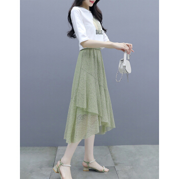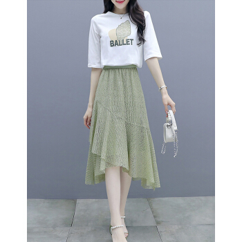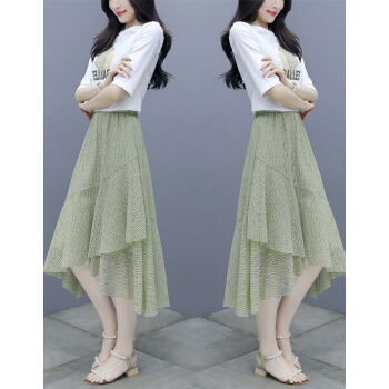莱倪晟纳短袖连衣裙女装夏装新款韩版宽松显瘦气质女神范两件套装中长裙子 绿色 请拍正确尺码 |