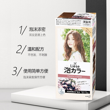 日本进口 花王(KAO)Prettia泡沫染发膏 普罗旺斯玫瑰茶棕 (1液34ml 2液66ml 护发素8g )植物泡泡不伤发 |