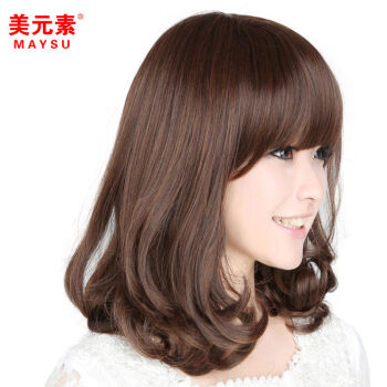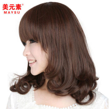 美元素 假发 女 齐刘海可爱修脸仿真蓬松梨花头卷发女士假发套hg66 2t33号深栗色 |