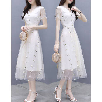 婪澈纯色连衣裙女女装夏季新款收腰显瘦气质流行A字裙女神范小个子裙子 图片色 请拍正确尺码 |