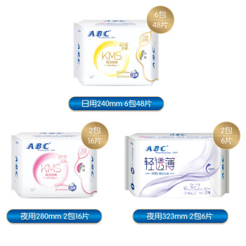 ABC KMS纤薄棉柔日夜组合10包70片(日用48片+夜用22片)卫生巾套装 |
