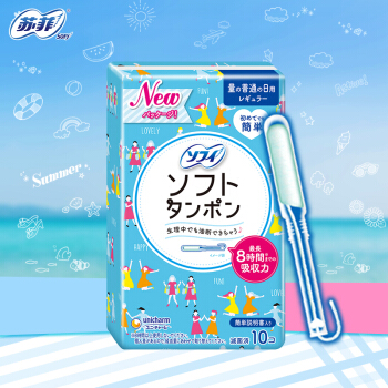苏菲Sofy 日本进口导管式轻柔内置入棉棒无感卫生棉条游泳运动 10支装(普通吸收量非卫生巾) |