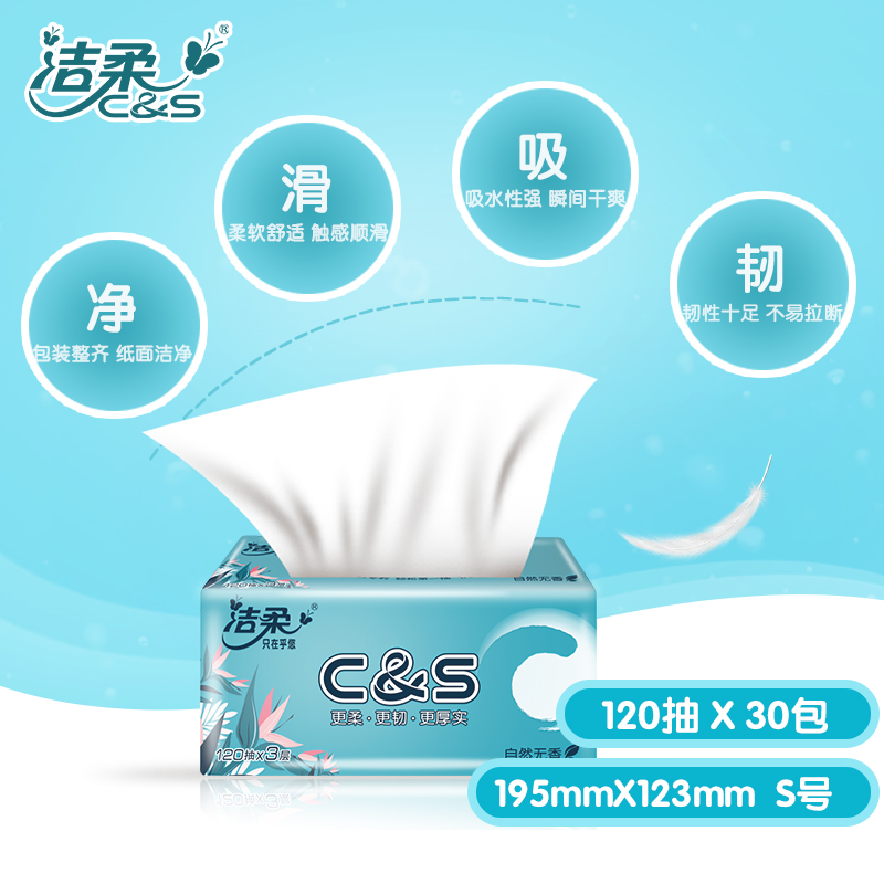 洁柔纸面巾120抽3层30包 |