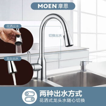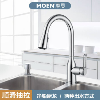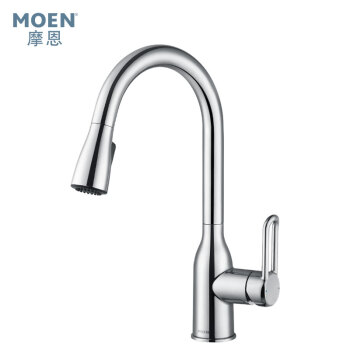 摩恩(MOEN)全铜冷热水抽拉龙头 高抛净铅健康龙头 恒芯阀芯抽拉式厨房龙头GN68002 |