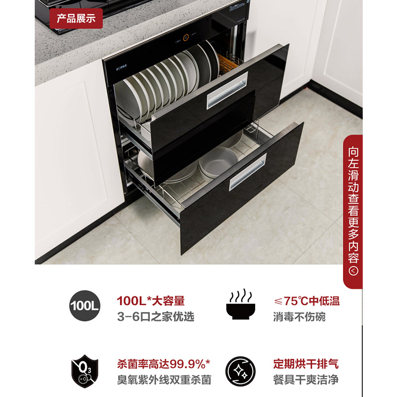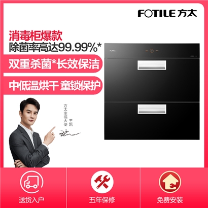 J45ES 二星消毒 自动烘干除湿 100L*大容量 紫外线+臭氧双重杀毒 消毒柜【钢化玻璃/黑色】 |