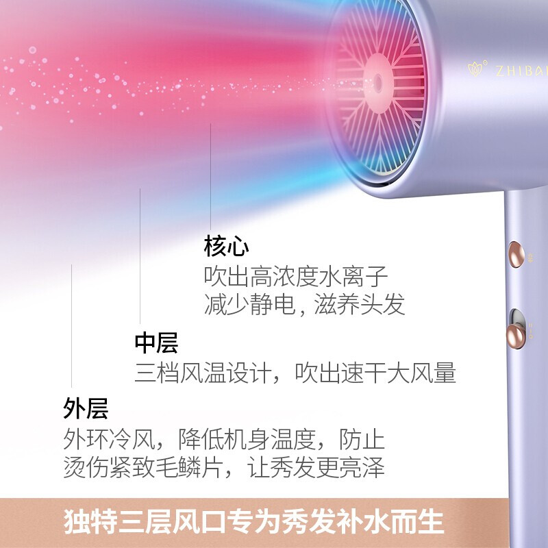 直白HL512三层水润吹风机水离子家用大风力吹风筒负离子电吹风网红款【ABS/紫色】 |