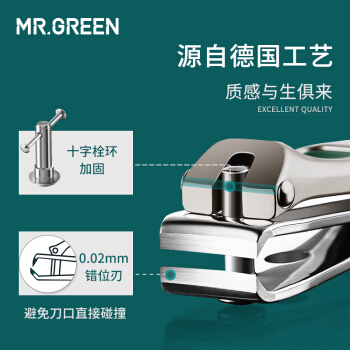 德国MR.GREEN指甲刀单个指甲剪大号进口不锈钢斜口指甲钳家用便携小号子套装原装甲沟炎灰厚嵌 中号(限时赠指甲锉) |