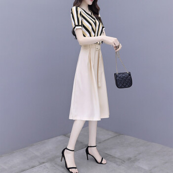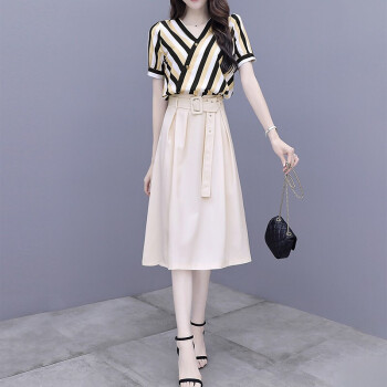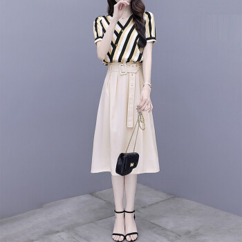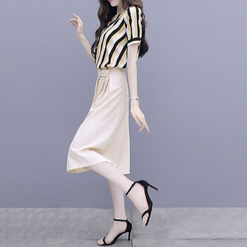 莱倪晟纳短袖雪纺连衣裙女装新品夏季新款韩版中长款印花宽松显瘦时尚性感减龄两件套装沙滩裙子 上衣+裙子 请拍正确尺码 |