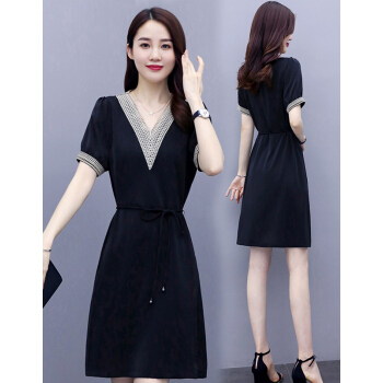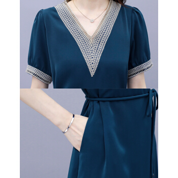 婪澈连衣裙女中长款女装夏季蕾丝镂空v领气质新款流行短袖显瘦透气裙子 蓝色 请下正确尺码 |