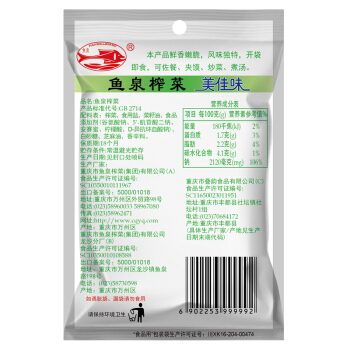 鱼泉 榨菜 美佳味榨菜 80g*6袋 即食下饭菜 开味菜 配粥小菜 重庆特产 |