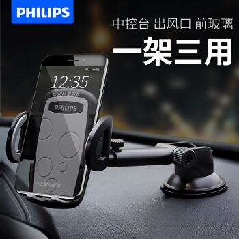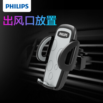 飞利浦(PHILIPS)车载手机支架 汽车导航支架空调出风口夹/吸盘多用支架汽车用品DLK35002黑色 |