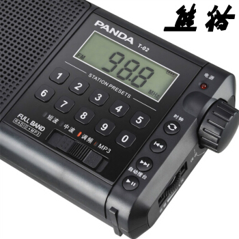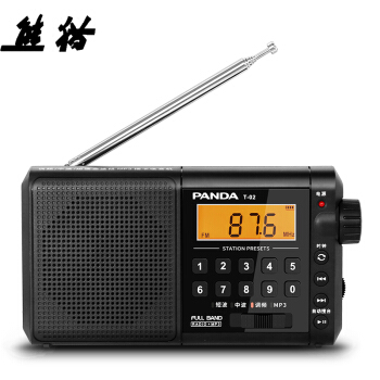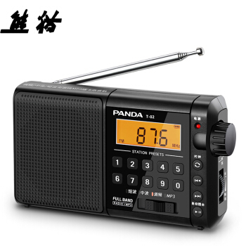 熊猫(PANDA)T-02全波段收音机老年人插卡TF卡便携老式可充电广播半导体 黑色 |