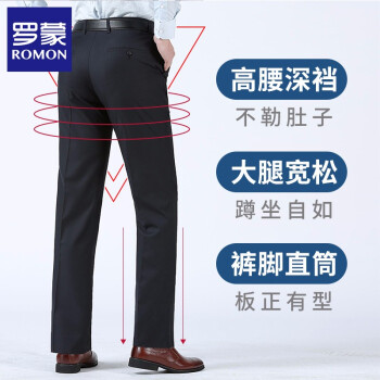 罗蒙(ROMON)西裤男 新款男士商务休闲修身正装抗皱免烫直筒裤子 藏青色 33 |