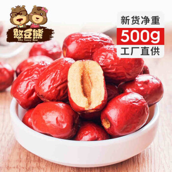 憨豆熊 新疆红枣2500g/500g优质和田特产若羌小灰枣5斤包邮 【香甜可口*500g】(尝鲜大袋装) |