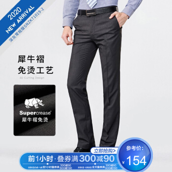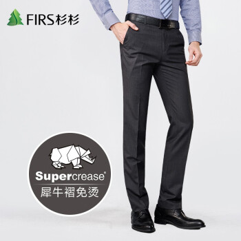 FIRS杉杉 西裤男 【犀牛褶】免烫商务防皱抗皱男士裤子休闲裤男韩版修身西裤正装直筒长裤 SNZK71019-2深灰常规款 80 |