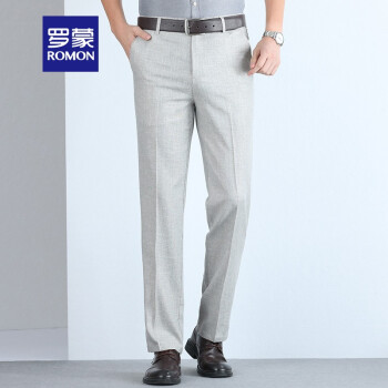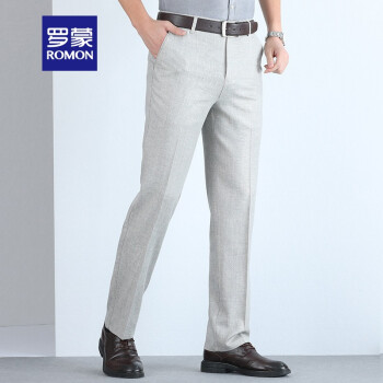 罗蒙(ROMON)中老年男装裤子夏季新款亚麻休闲西裤男士商务长裤子男装棉麻宽松直筒爸爸装 浅灰 33 |