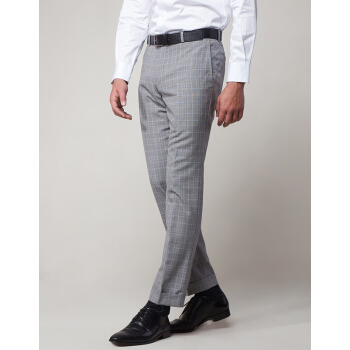 LAMPO/蓝豹春夏商场同款男士西裤商务浅灰底格林格全羊毛套装西裤超修身西服裤 浅灰底格林格 84 |