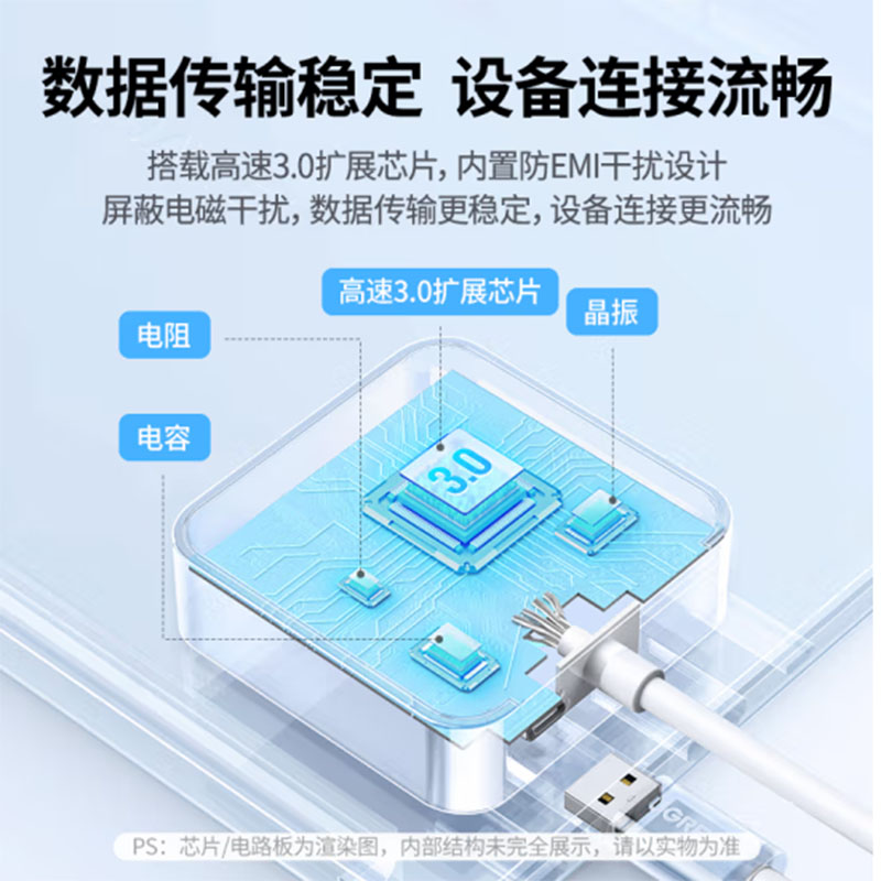 绿联 30221 USB3.0分线器扩展坞1.5米 一拖四多接口转换器 |