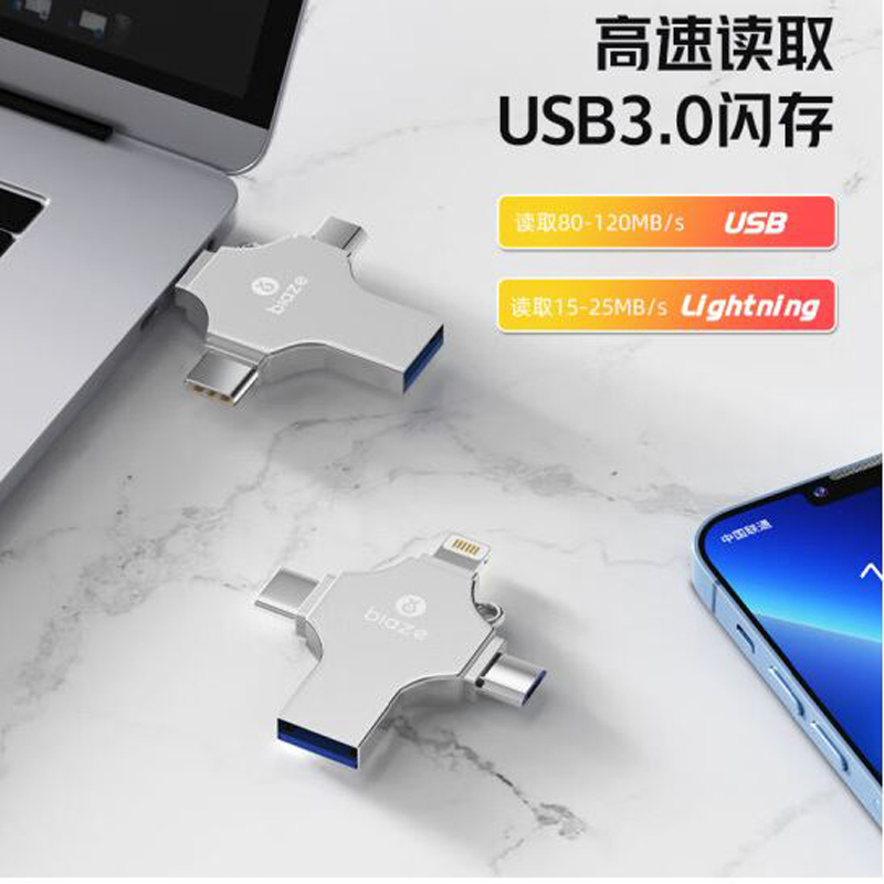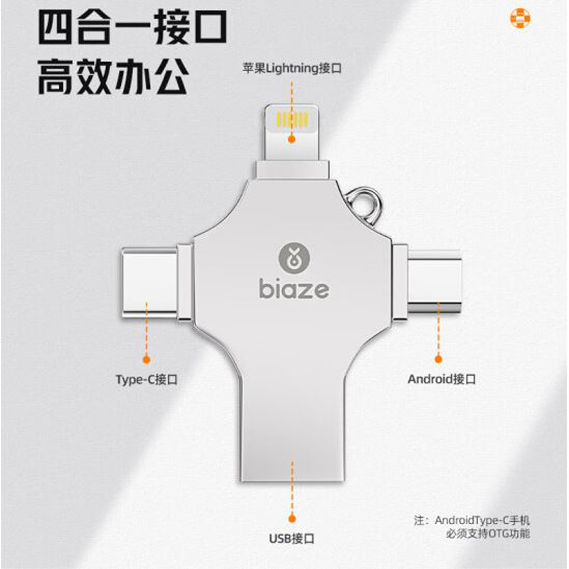 毕亚兹(BIAZE)256GB USB3.0 Lightning Type-C MicroUSB梯形口 通用四接口存储U盘 |