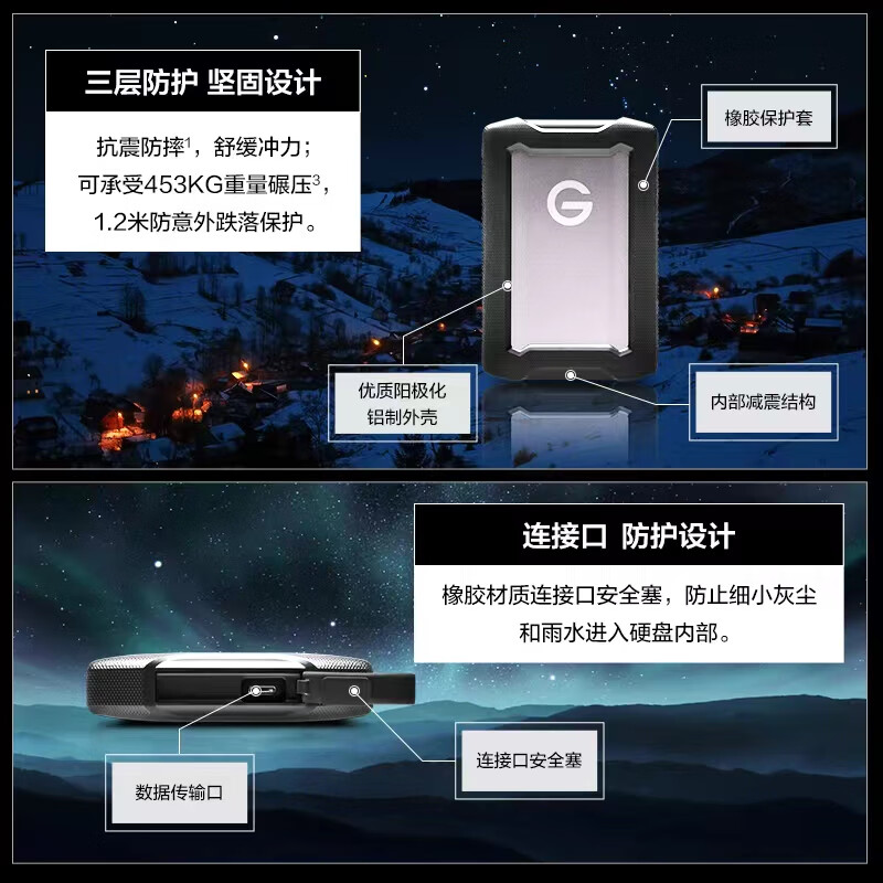 闪迪大师极客 5TB 移动硬盘 USB3.1 Armor ATD 2.5英寸 机械硬盘 |