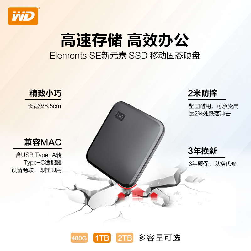 西部数据(WD) 1TB 移动固态硬盘(PSSD)Elements SE新元素 SSD 便携迷你坚固防震 存储备份笔记本手机电脑 |