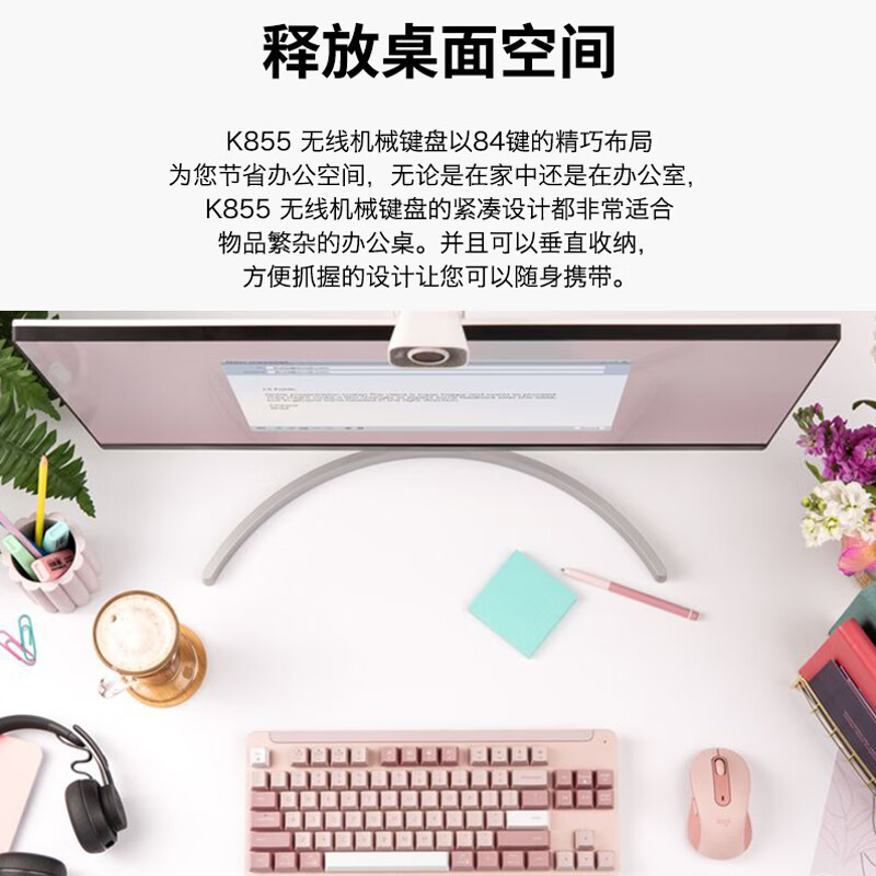 罗技(Logitech)K855无线机械键盘 无线键盘 蓝牙键盘 游戏办公键盘 84键 粉色 TTC红轴 带Logit Bolt接收器 |