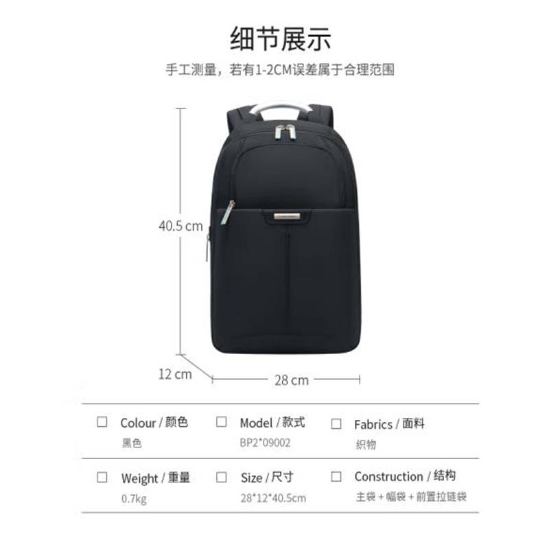 新秀丽 BP2*09002 双肩包男士电脑包背包旅行包 samsonite苹果笔记本电脑包 13.3英寸 黑色 |