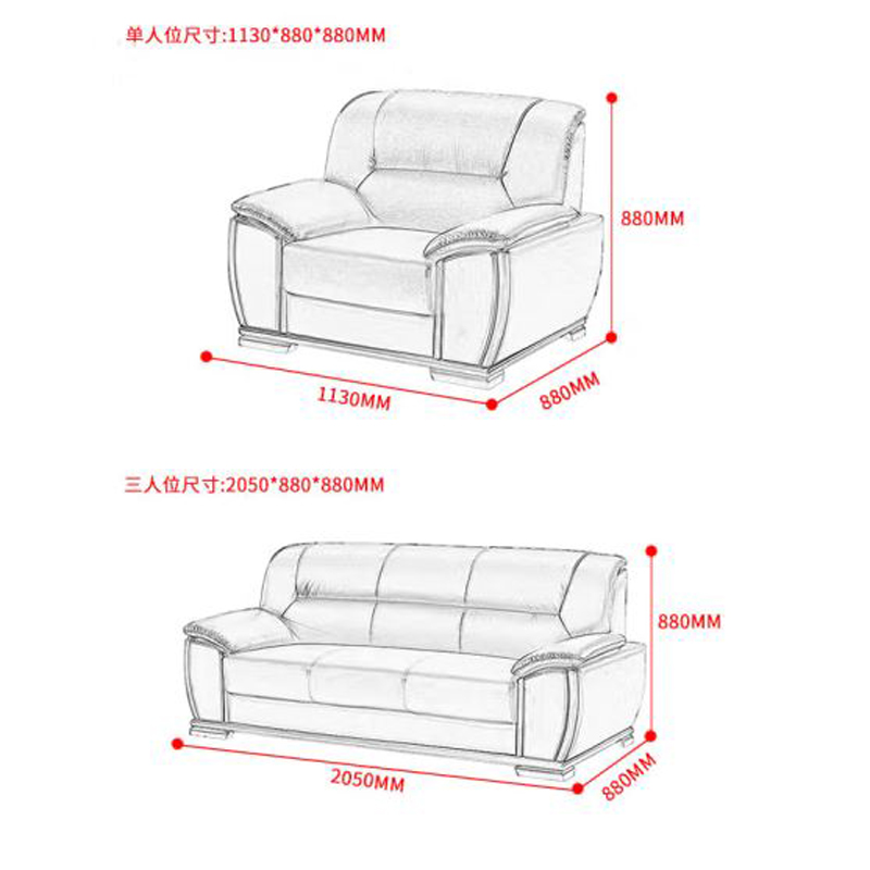 隆旭 S-028西皮三人位会客接待沙发商务皮沙发 |