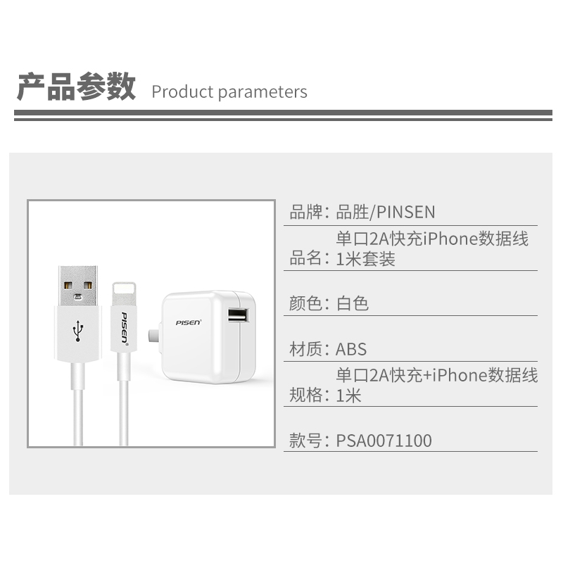 单口2A快充iPhone数据线1米套装【ABS/白色】 |