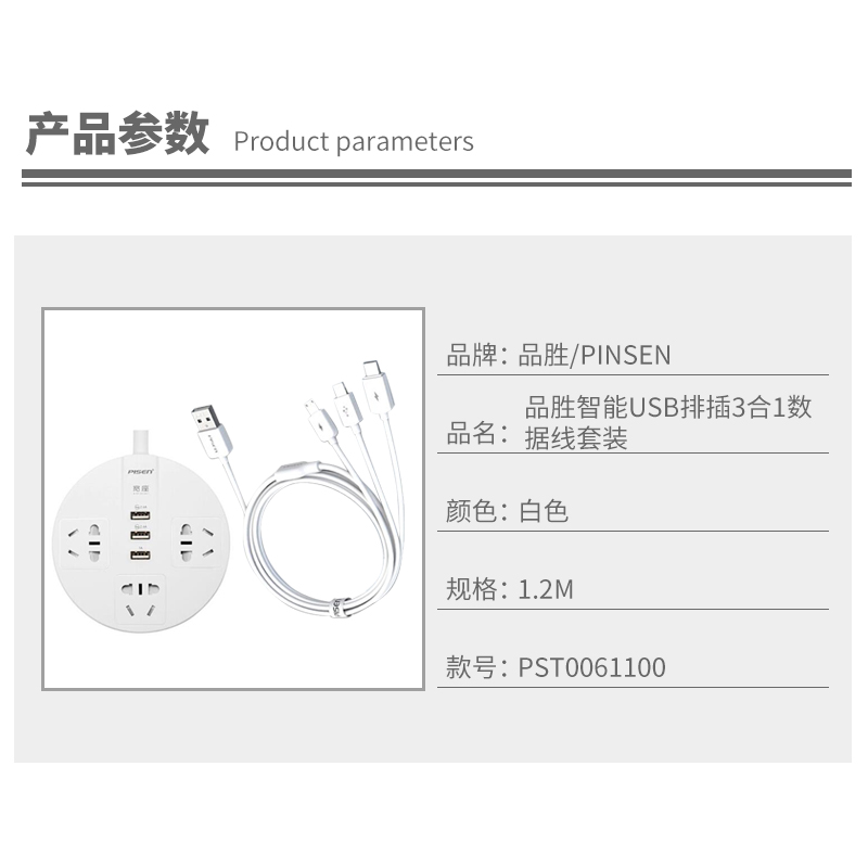 智能USB排插3合1数据线套装【ABS/白色】 |