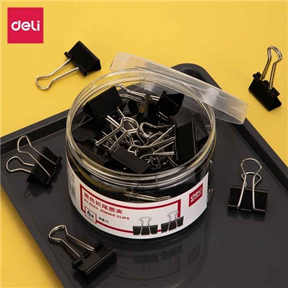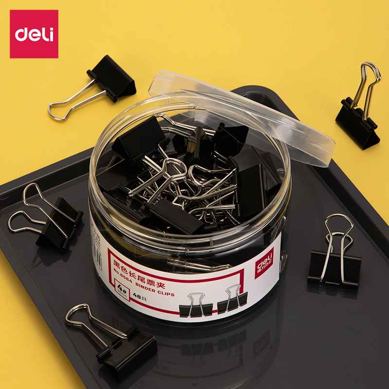 得力8564-4#黑色长尾票夹25mm筒装(黑)(48只/筒) |