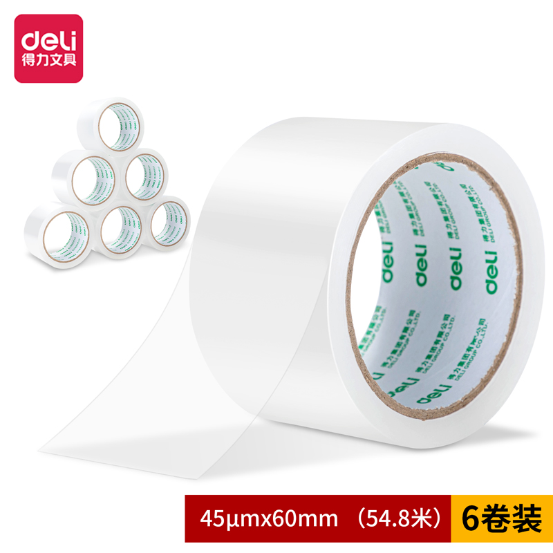 得力30322封箱胶带60mm*50y*50um(6卷/筒)(高透) |