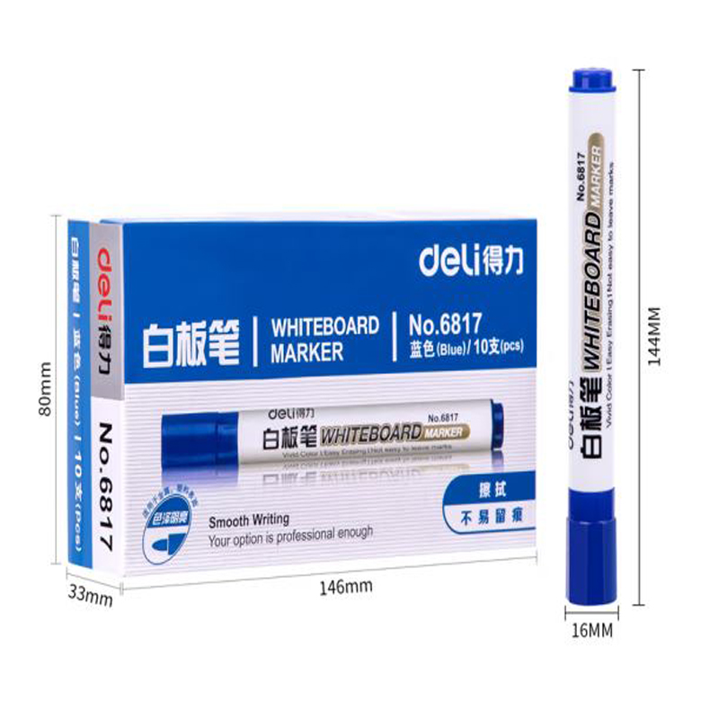 得力(deli)白板笔 色泽明亮可擦易擦蓝色10支/盒 6817 办公用品 |