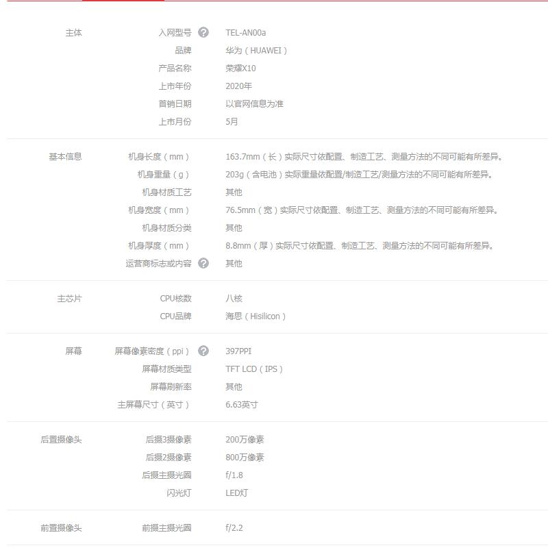 荣耀X10全网通5G双模 麒麟820 6GB+128GB【其他/B-1】 |