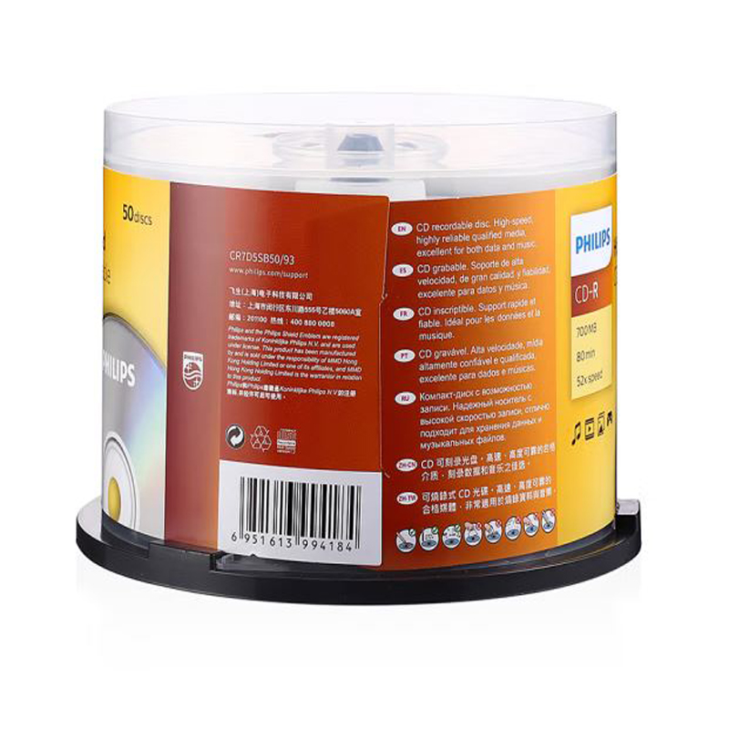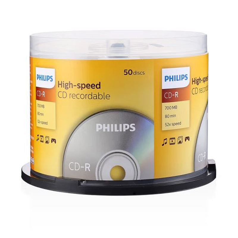 飞利浦(PHILIPS)CD-R空白光盘/刻录盘 52速700M 桶装50片 |