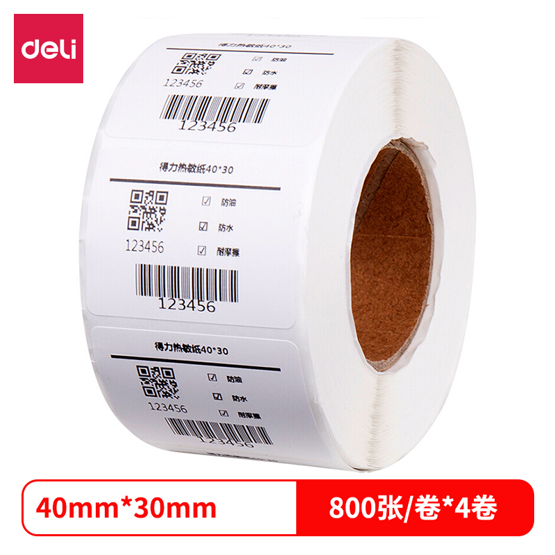 得力12000三防热敏标签纸(40*30mm-800张)(白)(4卷/筒) |
