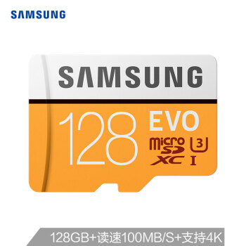 三星(SAMSUNG)128GB TF(MicroSD)存储卡 U3 C10 4K EVO升级版 传输速度100MB/s(新老包装随机发货) |