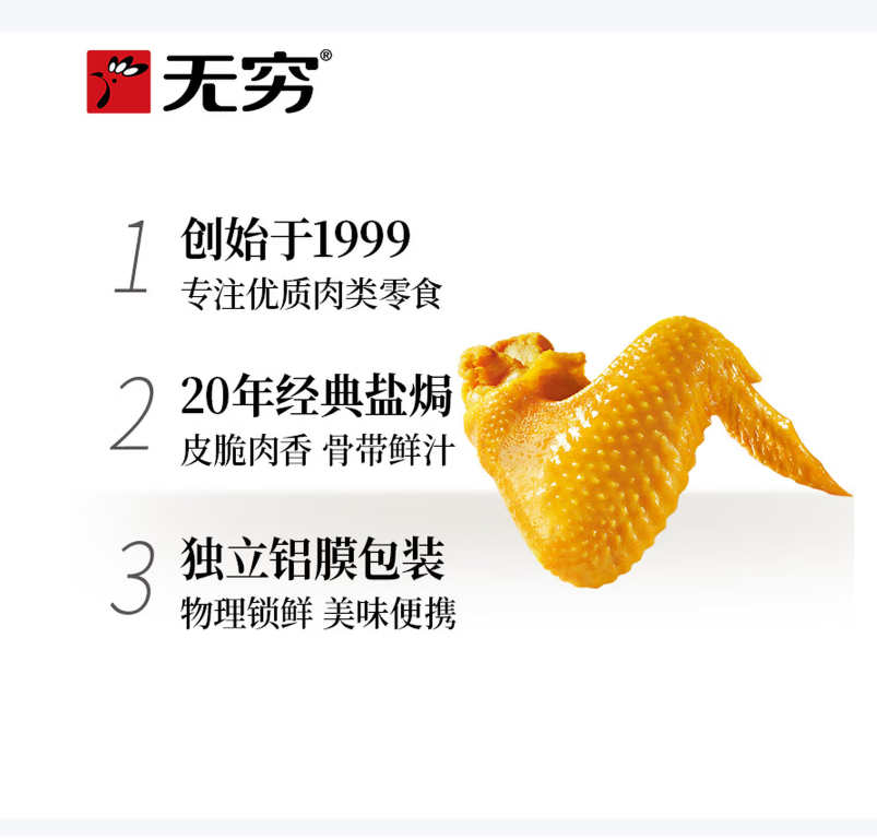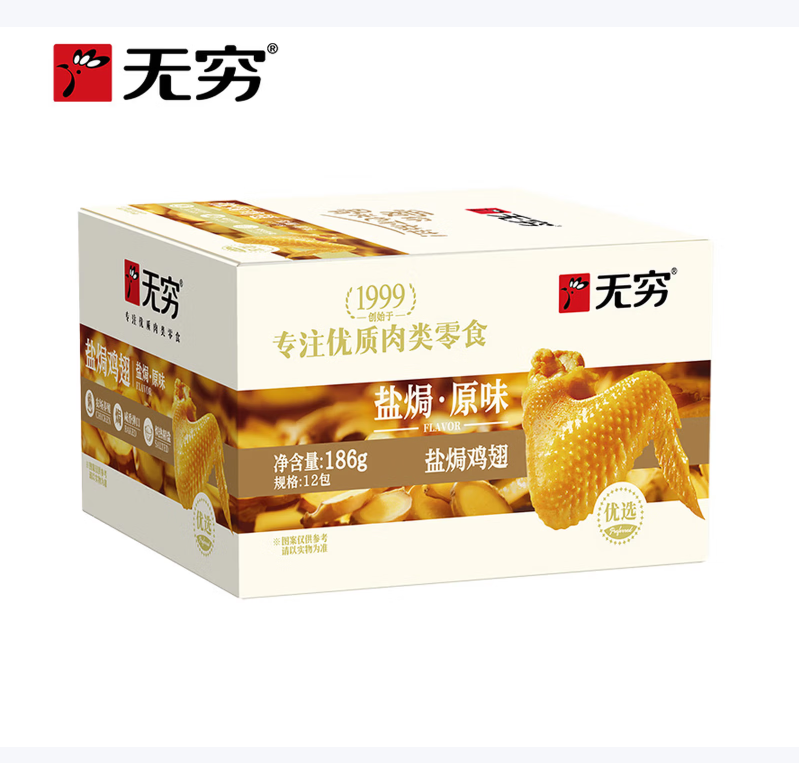 无穷即食盐焗鸡翅186g*1盒/12小包 |