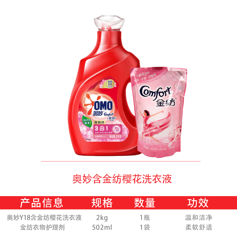 奥妙Y18含金纺樱花洗衣液二合一4斤+金纺502ml组合 |