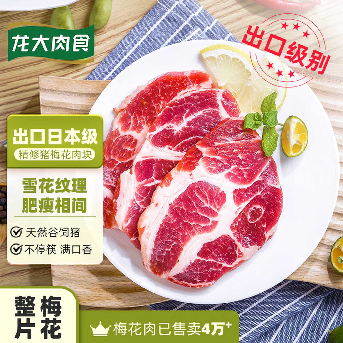 龙大肉食 烧烤猪梅花肉块2斤 出口日本级 |