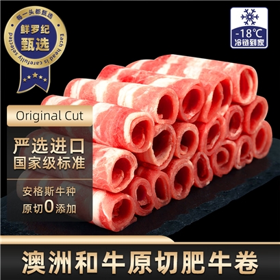 鲜罗纪澳洲和牛(谷饲)进口原切肥牛卷300g 雪花牛肉片 |