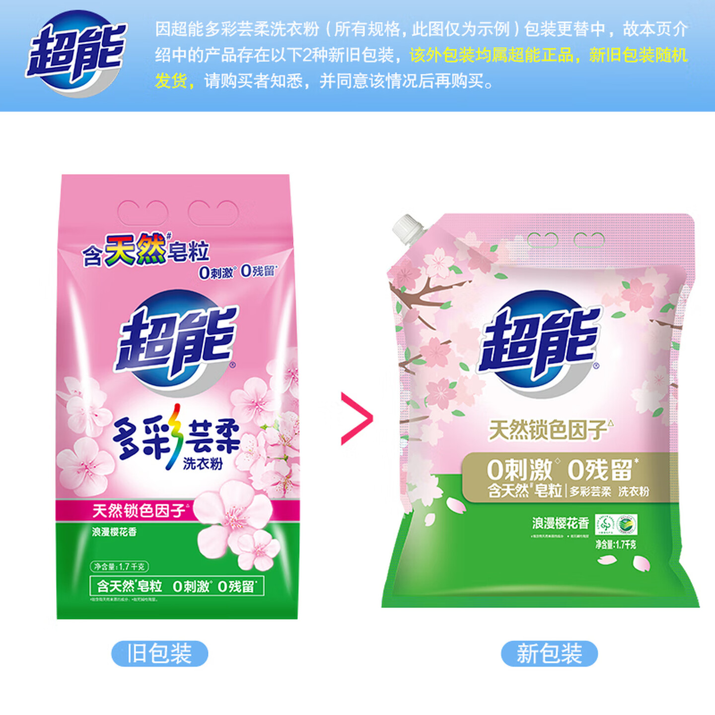 超能 多彩芸柔洗衣粉 浪漫樱花香 3.4斤 含天然皂粒 低泡易漂 |