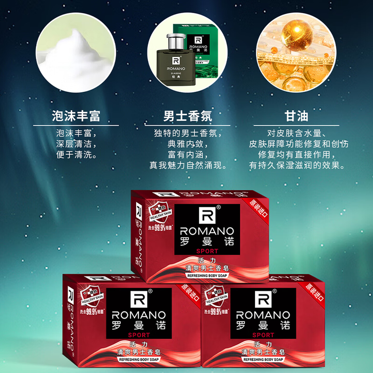 罗曼诺(ROMANO)男士香皂活力香型105g*3 |