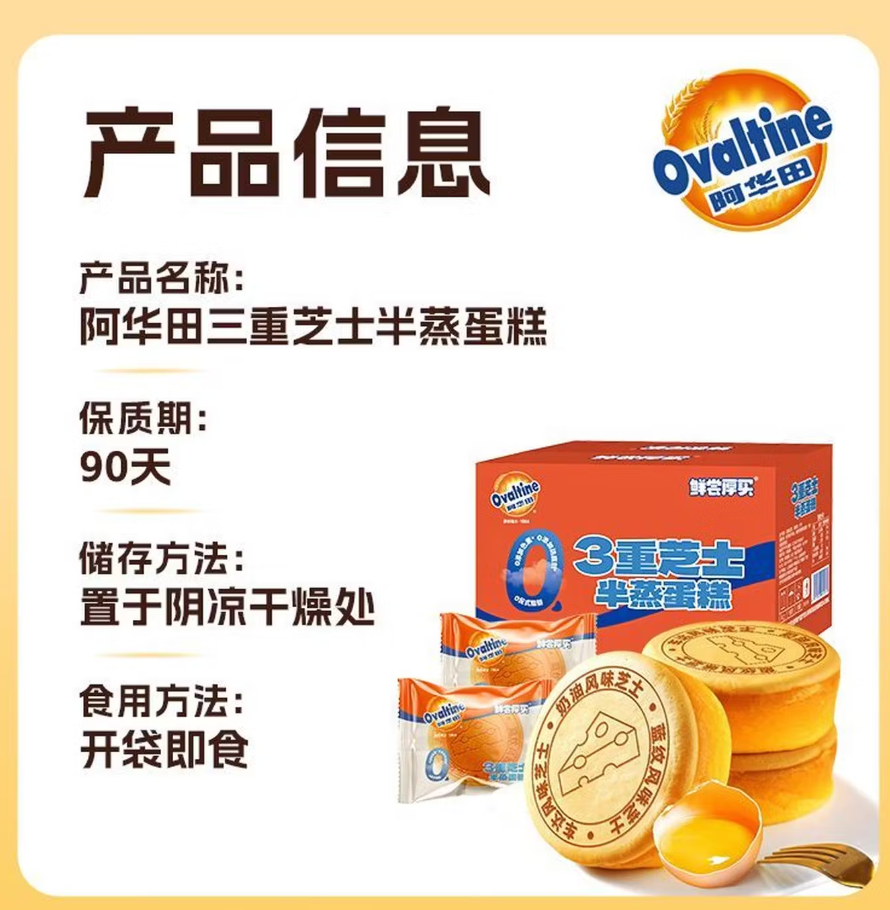 鲜尝厚买阿华田3重芝士半蒸蛋糕360g |