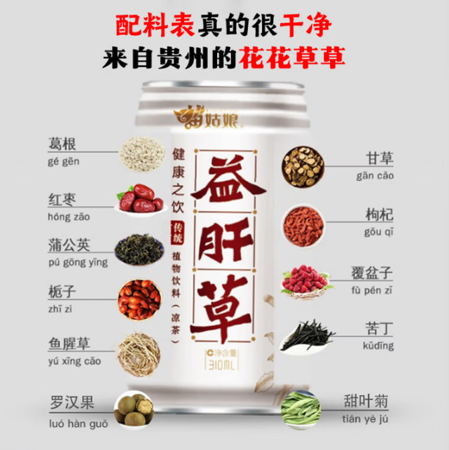 益肝草苗姑娘凉茶白罐310ml 凉茶饮料 |