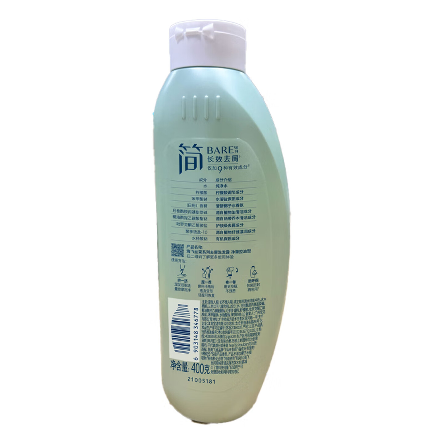 海飞丝简系列温和去屑洗发露洗发水净澈控油400g |