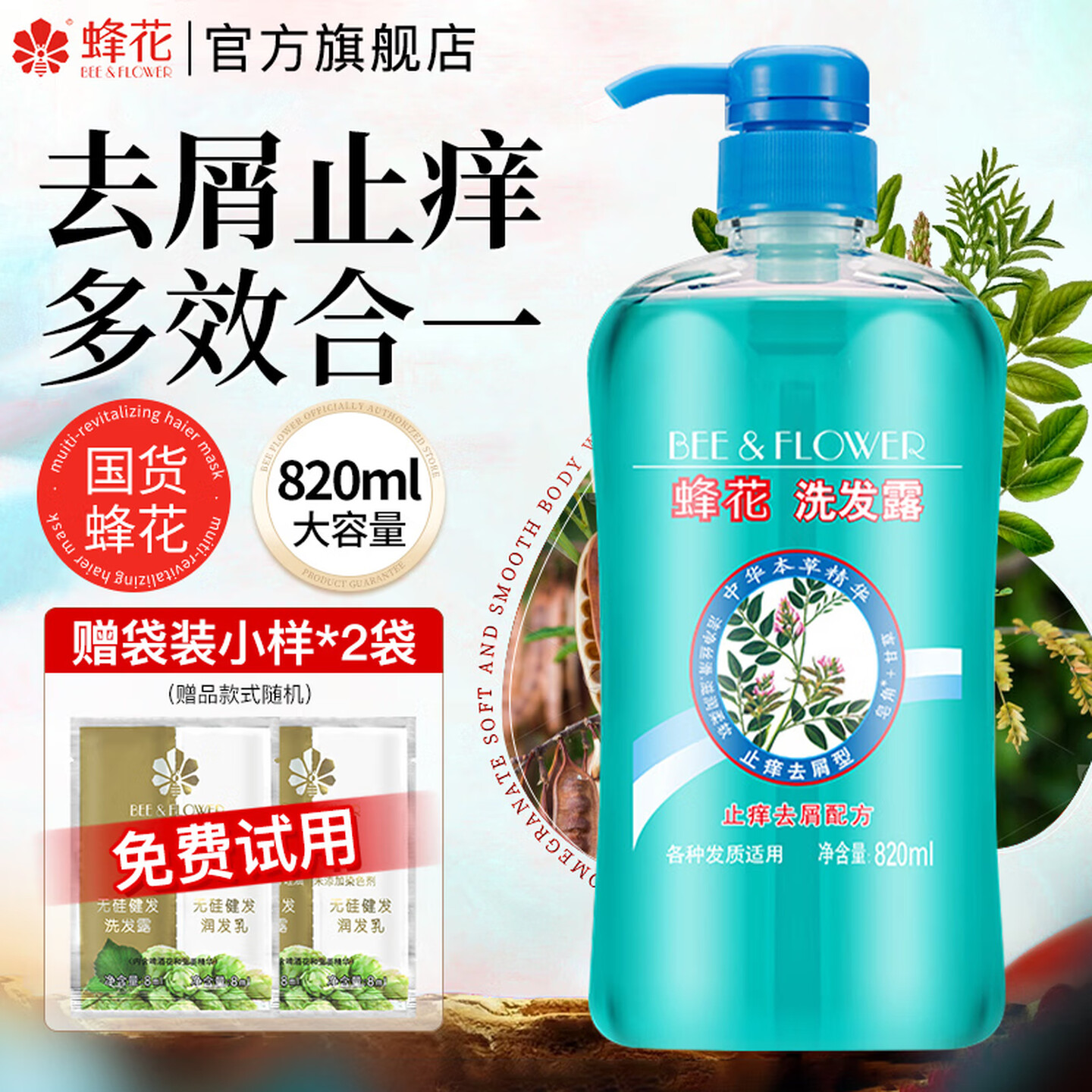 蜂花无硅油洗发水820ml |