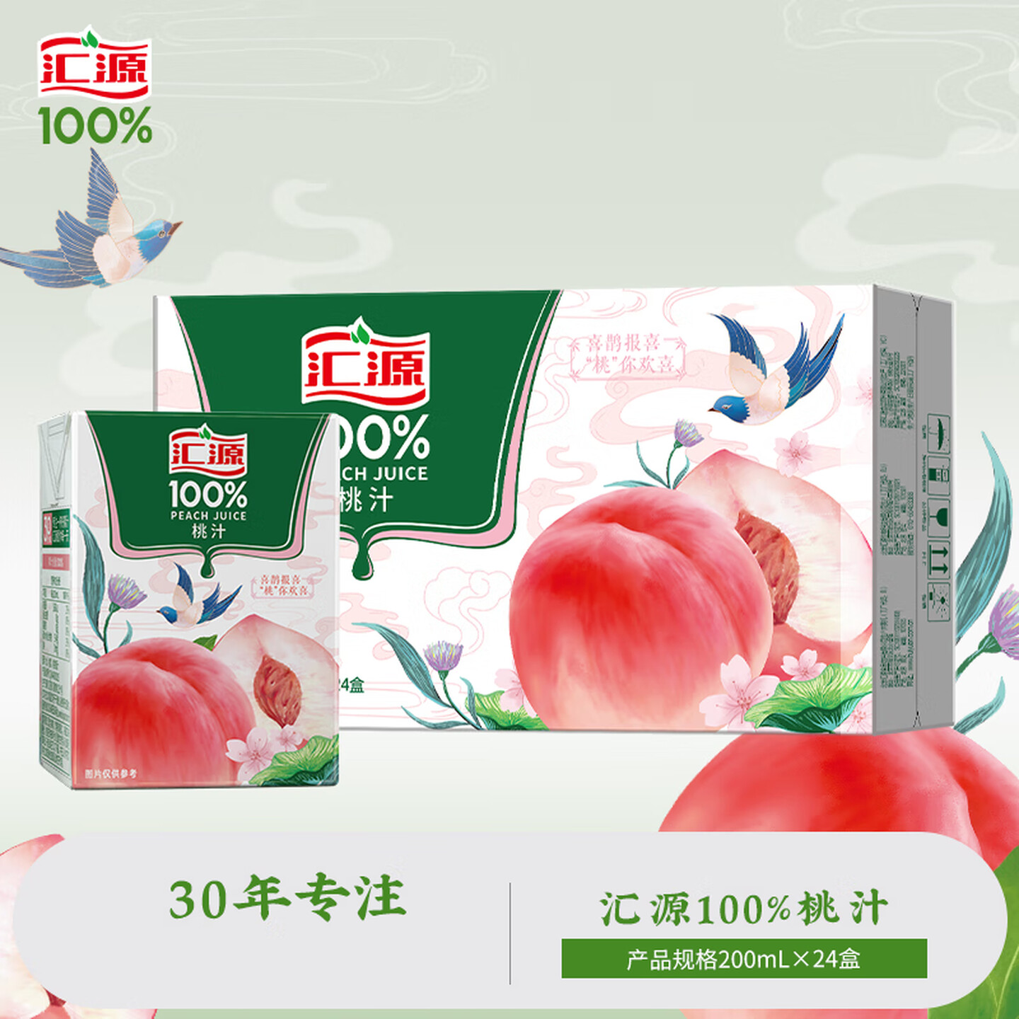 汇源100%桃汁纯果汁维生素果汁饮料200ml |