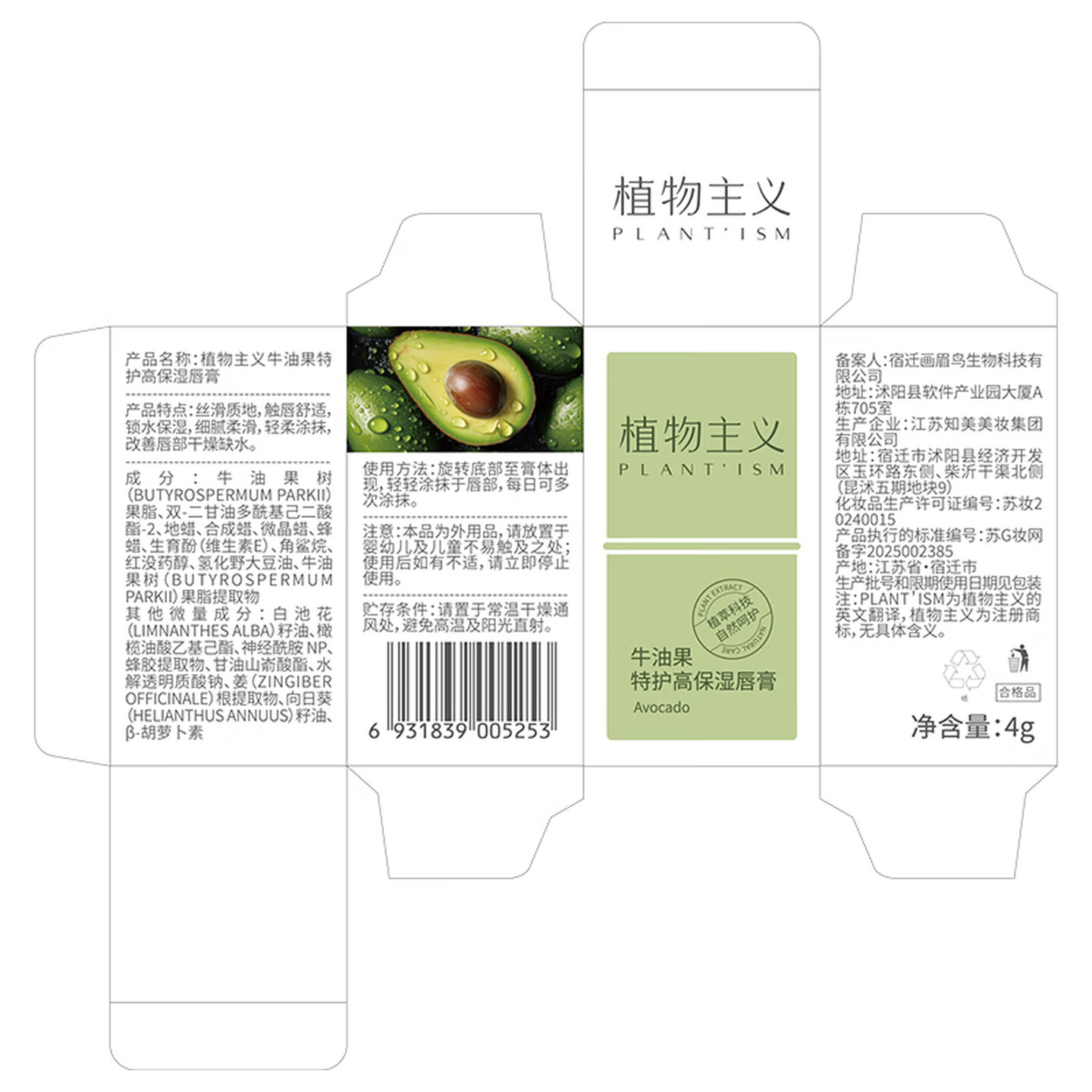 植物主义准孕妇润唇膏牛油果唇膏4g |