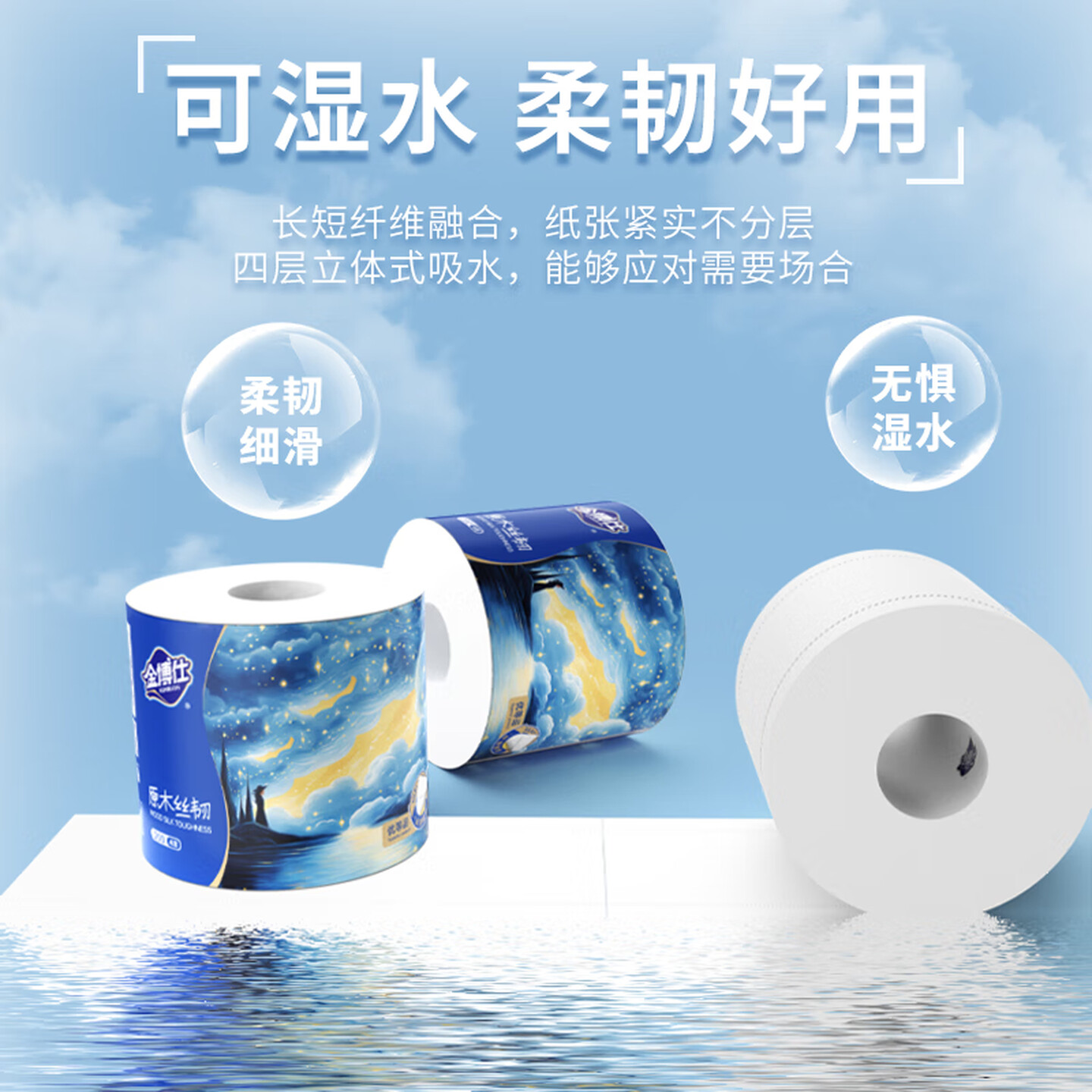 金博仕星空系列有芯卷纸可湿水4层200g*27卷 |